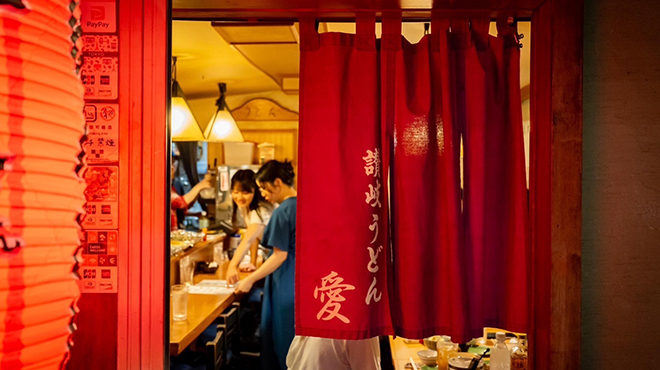 表参道にあるランチは讃岐うどん、夜はおばんざいと一品料理と日本酒を提供する呑み処。